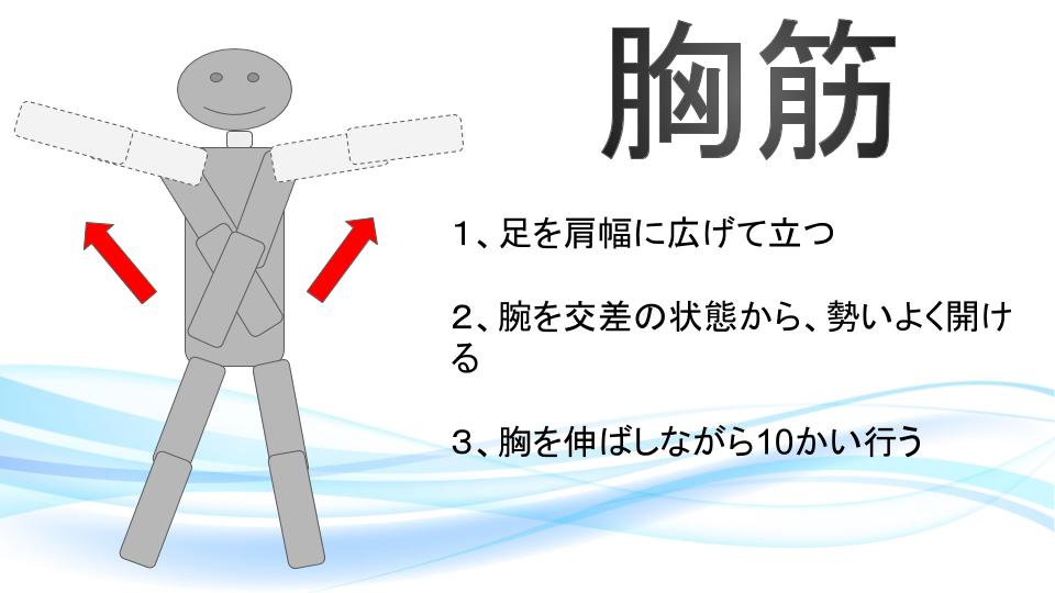 胸の筋肉を動かして、肋骨の動きを高める体操です。