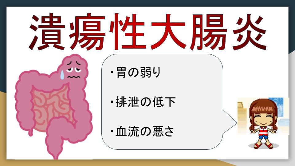 そもそも潰瘍性大腸炎の原因は不明とされていますが、炎症が起こるという事はどこかに弱っている所があるのです。